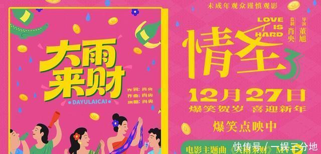 《情圣3》近日发布了主题曲《大雨来财》MV,由肖央作词作曲并演唱,MV中魔性的旋律和洗脑的小词,完美契合这部喜剧电影。将影片中的高能爆笑名场面下的喜剧效果拉满,听一遍就能立刻加入单曲循环的程度,“大雨来财,所有烦恼都起开”简直就是此刻观众的心声。